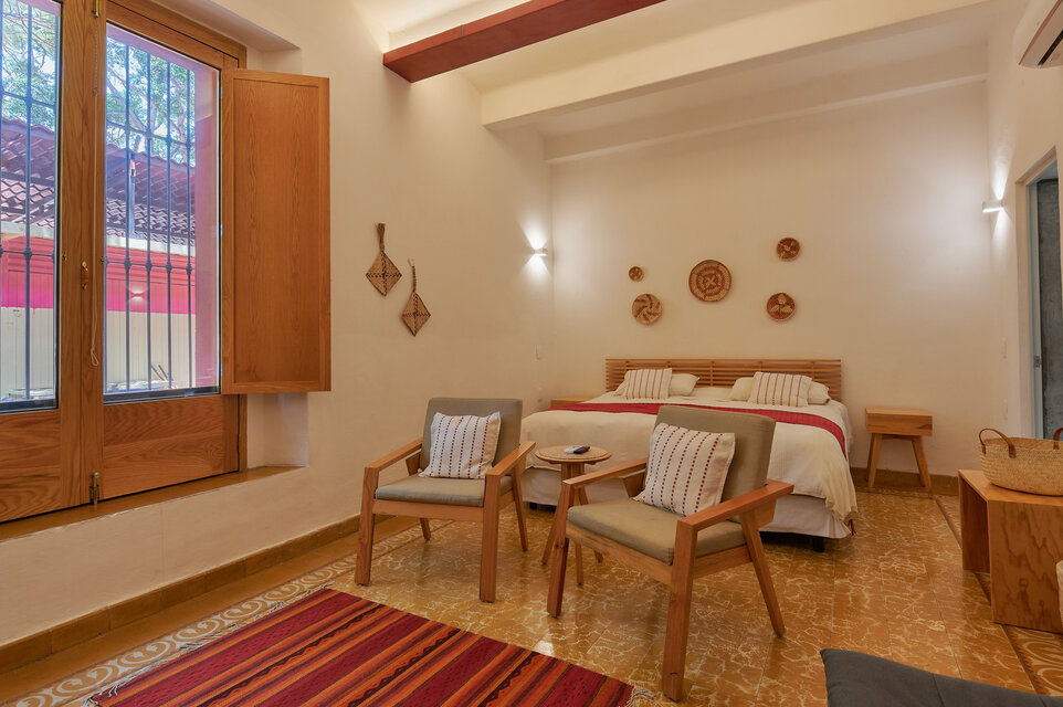 Hermoso apartamento privado de 39 m2. NATALIA 2 es una suite con una recámara grande con cama king que cuenta con sala, sofacama, escritorio y un baño. Además, la suite tiene comedor y cocina. Cuenta con dos pantallas 4K de 43 pulgadas, WiFi y se puede combinar con la habitación OLGA 1 para convertirlo en departamento de 2 habitaciones. Los huéspedes pueden hacer uso de la terraza común ubicada en el 2do piso para tener vistas a la ciudad.