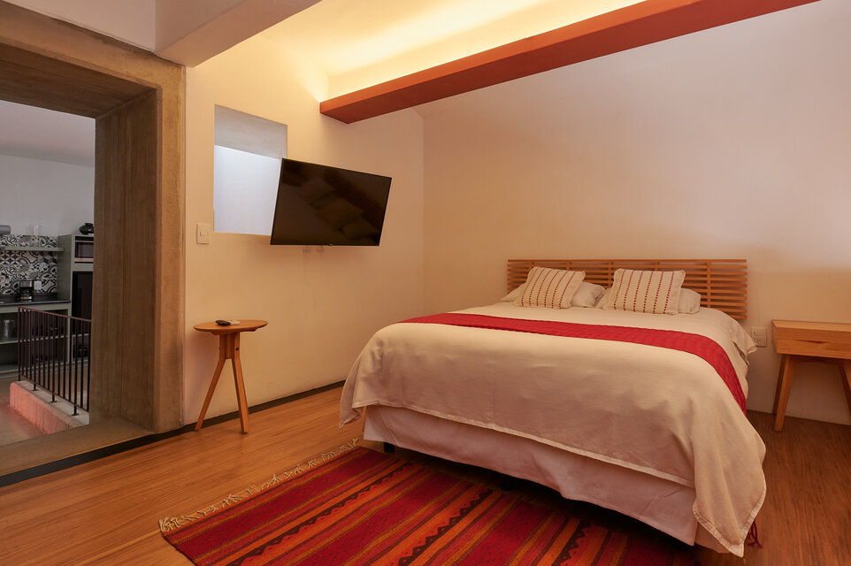 Moderno loft privado de 64 m2. CASILDA 5 fue creado especialmente para las familias. Cuenta con comedor y cocina en la entrada, una recámara con cama y sofacama en la parte superior y la recámara principal con cama, escritorio y baño completo en la parte inferior. Tiene dos pantallas 4K de 43 pulgadas y WiFi. Los huéspedes pueden hacer uso de la terraza común que se encuentra en el 2do piso para tener vistas a la ciudad. En marzo 2021 reemplazamos la ventana que da a la calle por una de PVC para una estancia más placentera.